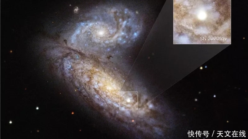 图解:哈勃太空望远镜拍摄了超新星 SN 2020fqv 的图片 图源:NASA/ESA/Ryan Foley/UC Santa Cruz/Joseph DePasquale/STScI)